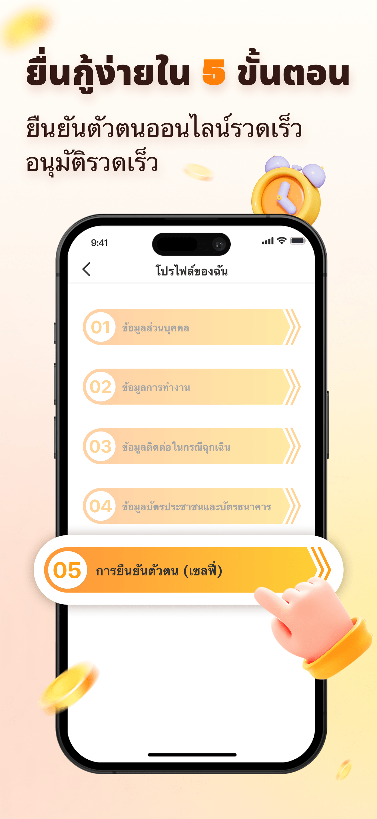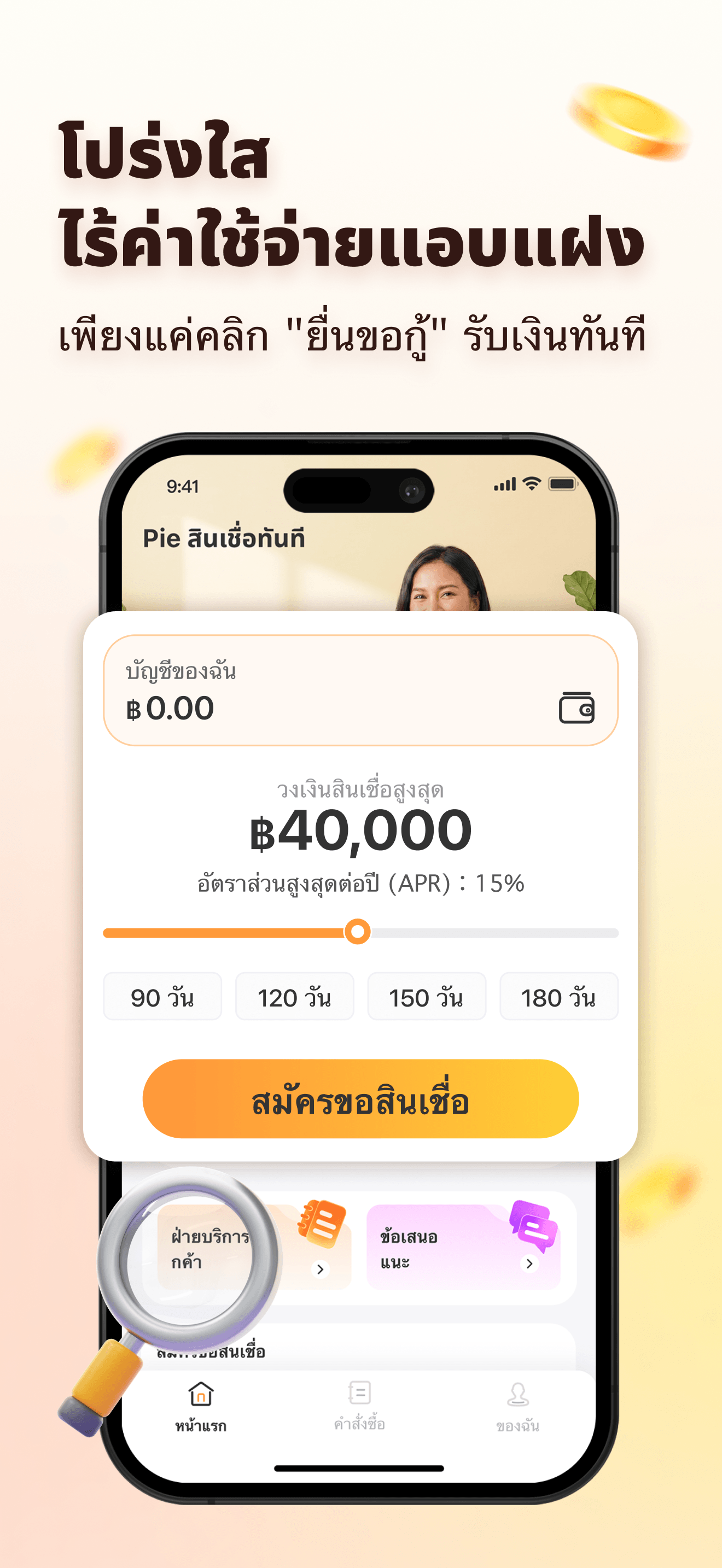 กรอกแบบฟอร์มออนไลน์สั้นๆ 100% เพียงกรอกบัตรประจำตัวประชาชนและข้อมูลส่วนตัวเล็กน้อย ไม่ต้องกรอกเอกสาร ไม่ต้องกรอกบรรทัดใดๆ